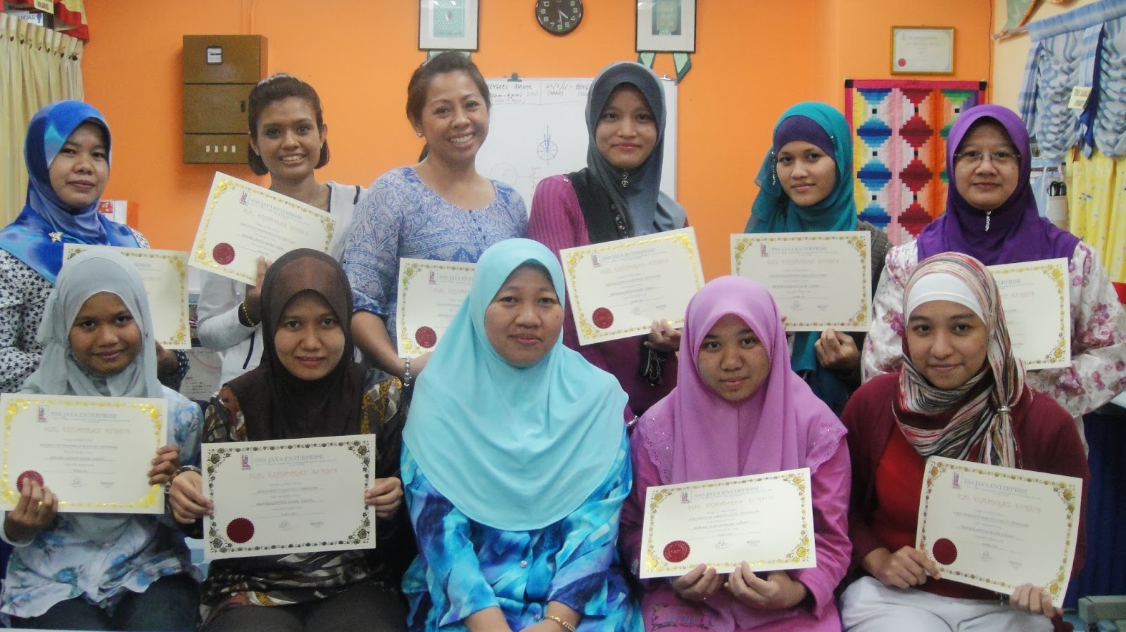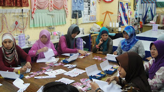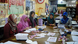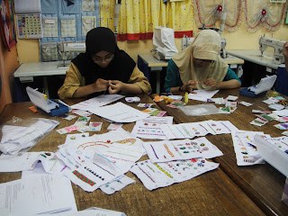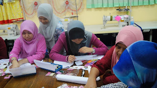 | Peserta menjahit sambil mendengar arahan dari Cikgu Aini |