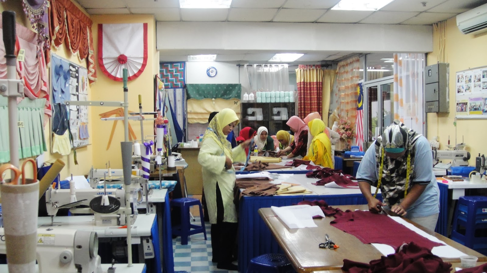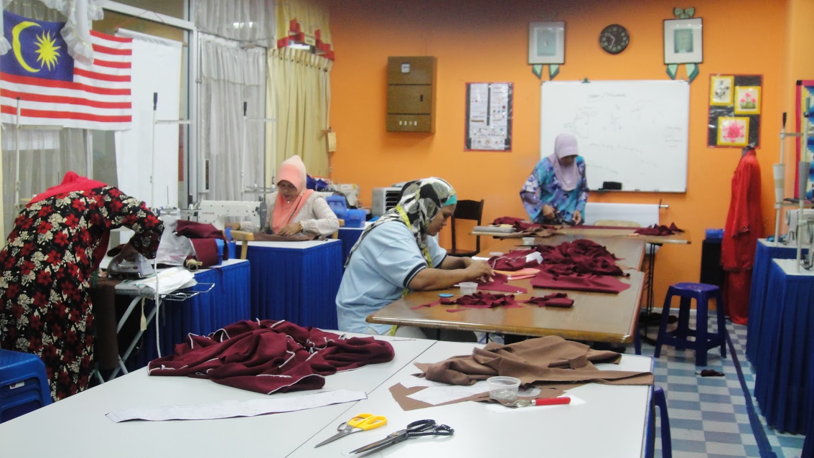 1. Cikgu memberi tunjuk ajar kepada peserta kursus jahitan