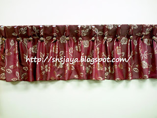 Jenis-Jenis Langsir1) Basic body 2) Basic body with ruffles 3) Kitchen curtain 4) Festoon blind 5) Royal scallop 6) Tie scallop 7) Box-pleat 8) Goblet 9) Fitted bedsheet & pillowcase 10) Comforter | Jenis-Jenis Langsir1) Victoria rossette 2) Butterfly ribbon 3) Sunset scallop 4) Tie scallop part II 5) Heritage 6) Pelmett 7) Rushed goblet 8) Balloon valance 9) Sheer delight 10) Alas meja 11) Sarung bakul |