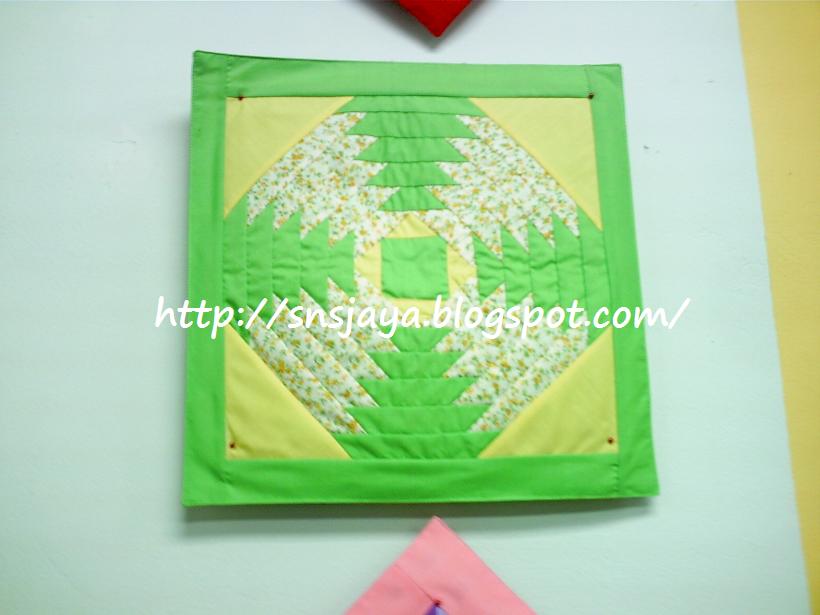 1) Four patch block & nine patch block 2) Log cabin 3) Bow ties 4) Card trick design 5) Amish star 6) Star sashing 7) Lone star 8) Houses 9) Ohio star / Flying cheese | 1) Tumbling block 2) Dresden plate 3) Double weeding ring 4) Suffolk puffs 5) Cathedral window 6) Basket & flowers 7) Drunkards path block 8) Gathering |